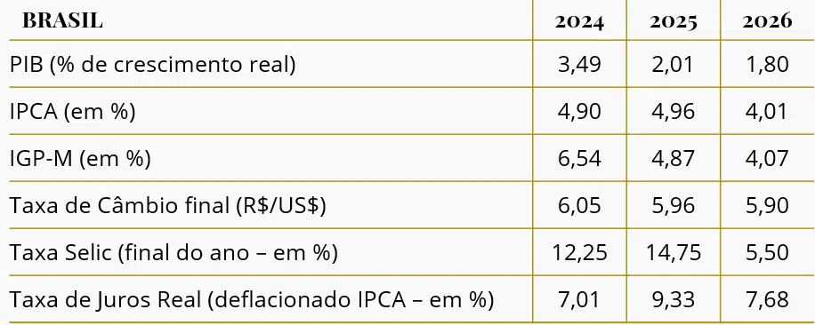 Fonte: Focus (27/12/2024) e Selic e IGP-M fechados em 2024.