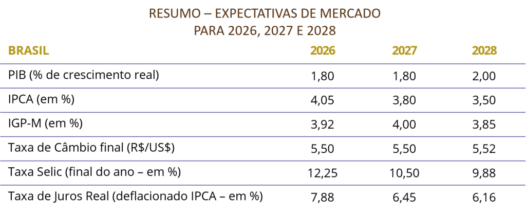 Apesar de a inflação indicar um processo de convergência gradual, recentes sinalizações relacionadas ao cenário político ampliam a cautela do mercado quanto à condução da política fiscal no período eleitoral. Esse ambiente tem o potencial de elevar a percepção de risco e pressionar as expectativas do mercado.