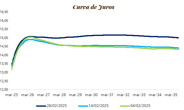 Por fim, a curva de juros apresentou uma abertura significativa em fevereiro, especialmente em vértices intermediários e longos, refletindo a reavaliação das expectativas do mercado quanto à trajetória da política monetária. Enquanto as taxas de curto prazo seguiram mais ancoradas pela sinalização cautelosa do Banco Central, os vértices mais longos registraram alta, impulsionados por incertezas fiscais e pressões inflacionárias. O movimento foi influenciado pelo avanço do IPCA-15, que subiu 1,23% no mês, acima das projeções do mercado, e pelo receio de que a inflação persistente limite o espaço para futuros cortes na taxa Selic. Além disso, a deterioração da percepção fiscal, com incertezas sobre a trajetória da dívida pública, elevou os prêmios de risco nos vencimentos mais longos da curva de juros. Apesar de uma ligeira queda nas taxas dos Treasuries dos EUA, o cenário externo permaneceu marcado por volatilidade e aumento da aversão ao risco por parte dos investidores.