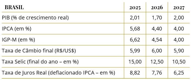 O PIB brasileiro cresceu 3,6% no quarto trimestre de 2024. Em fevereiro, a economia registrou aceleração na prévia da inflação e um leve aumento no desemprego. No cenário internacional, a economia dos Estados Unidos demonstrou sinais de desaceleração, com tensões comerciais e revisão para baixo do crescimento, enquanto a zona do euro teve expansão modesta e a China enfrenta desafios no setor imobiliário.