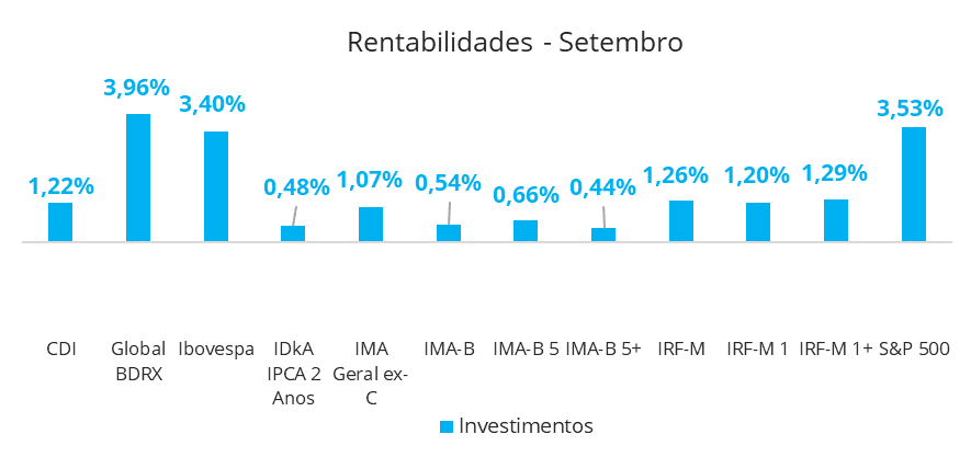 O mês de setembro apresentou desempenho amplamente positivo entre os principais índices de mercado, em meio ao aumento do apetite por risco e à expectativa de estabilidade monetária.