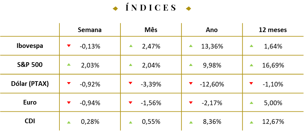 IPCA de julho tem menor alta para o mês desde 2023. A inflação medida pelo IPCA subiu 0,26% em julho, resultado inferior ao observado no mesmo mês de 2024 (+0,38%) e o menor para o período desde 2023 (+0,12%). Em 12 meses, o índice acumulado recuou de 5,35% para 5,23%, mantendo a trajetória de desaceleração. Entre os grupos de maior peso, os destaques de alta foram Habitação (+0,91%), Despesas Pessoais (+0,76%) e Transportes (+0,35%). No campo negativo, as maiores quedas vieram de Vestuário (-0,54%), Alimentação e Bebidas (-0,27%) e Comunicação (-0,09%). Segundo o IBGE, a deflação em alimentos refletiu maior oferta e safras favoráveis, com recuos expressivos em itens como batata-inglesa, cebola e arroz.